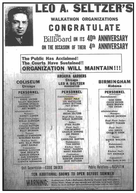 “In 1928 it was tree-sitting. In 1930 it was dance marathons. In 1932 it was Walkathons. Last week it appeared possible that in 1936 the U. S. appetite for preposterous endurance might take an even more eccentric form: the Roller Derby. In Chicago 25 young men and women were roller-skating in circles around the Coliseum. They had been doing so since Christmas Day. It was the fourth Roller Derby held in the U. S. since last August. Crowds averaged 10,000 a day.” (Time Magazine Monday, Feb. 03, 1936)