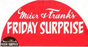 One of Portland’s favorite traditions was the annual Friday Surprise at Meier & Frank’s. The tradition started on April 29, 1887 as a weekly sales event. When Meier & Frank held a Friday Surprise, crowds of people would fill the aisles. Friday Surprise became the Friday Frenzy. Sales records went through the roof.